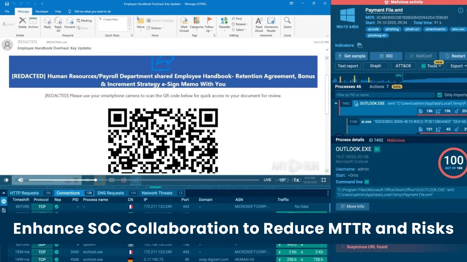 ANY.RUN đẩy nhanh quá trình ra quyết định từ phân loại đến ứng phó bằng cách cung cấp: