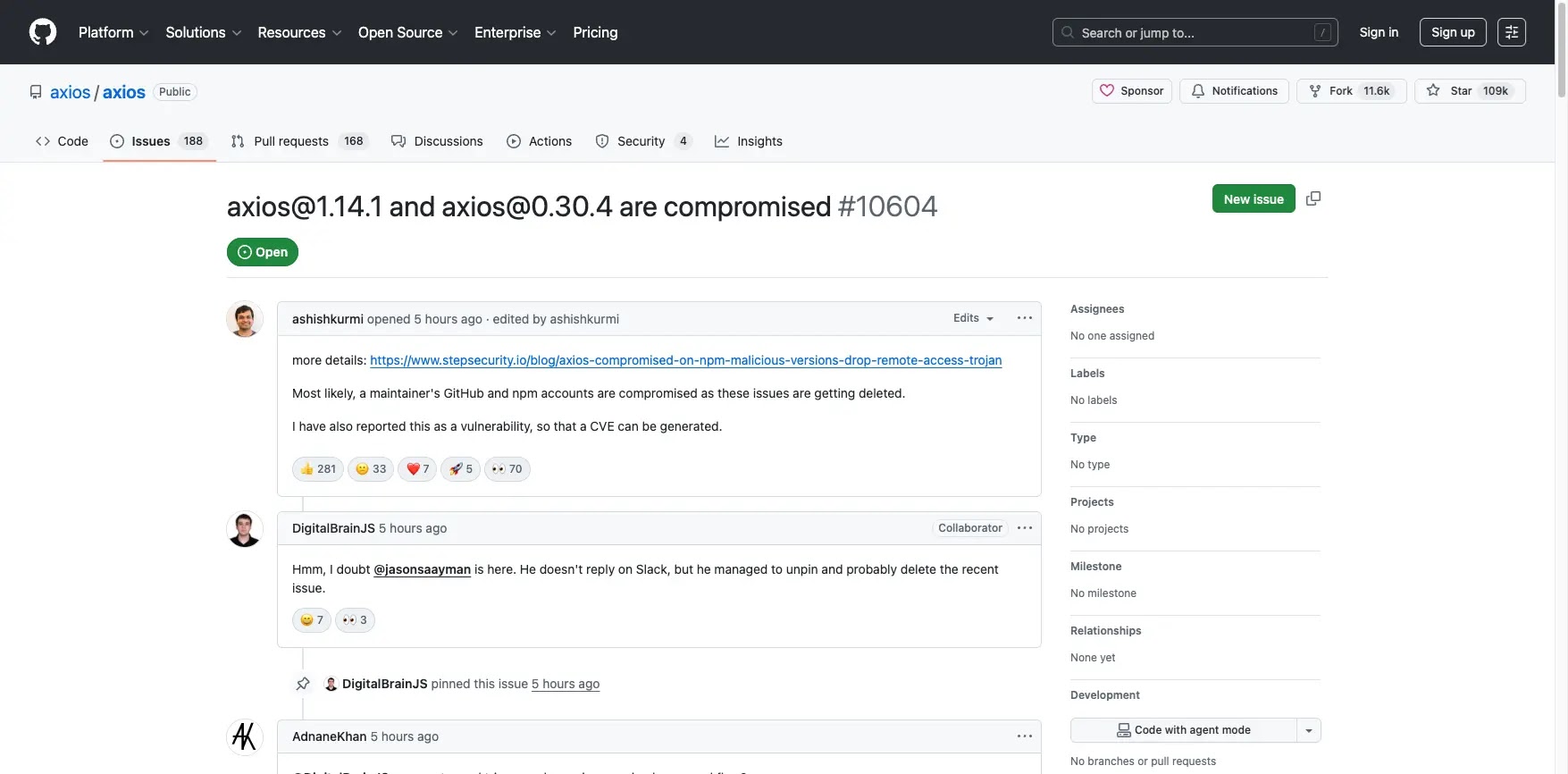 Với hơn 100 triệu lượt tải xuống hàng tuần, Axios là ứng dụng khách HTTP phổ biến nhất trong hệ sinh thái JavaScript. Điều này khiến cuộc tấn công chuỗi cung ứng này trở thành một trong những sự cố có tầm ảnh hưởng lớn nhất thuộc loại này.