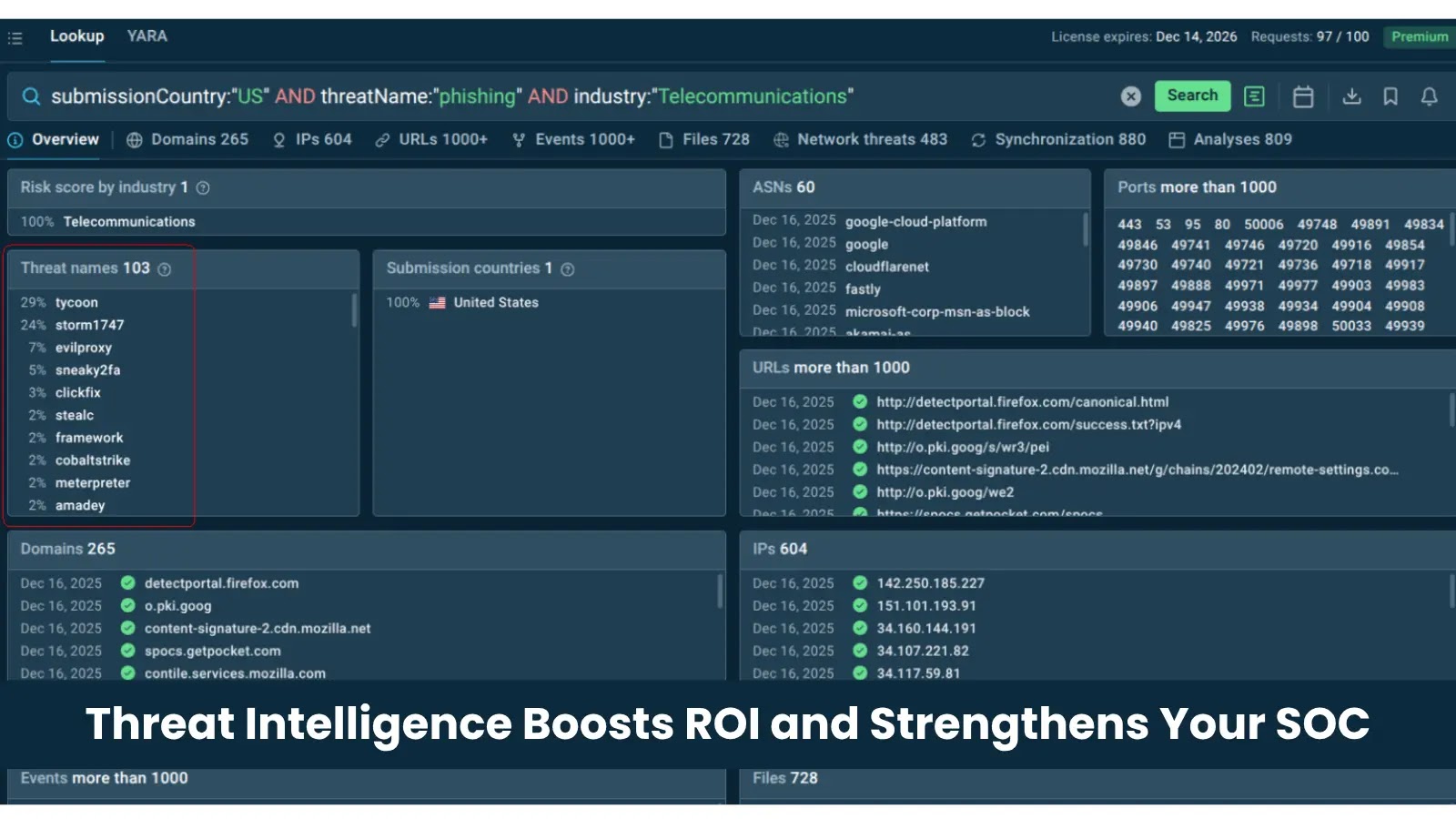 Thông tin tình báo về các mối đe dọa giúp tăng cường ROI cho SOC bằng cách kích hoạt các khả năng sau: